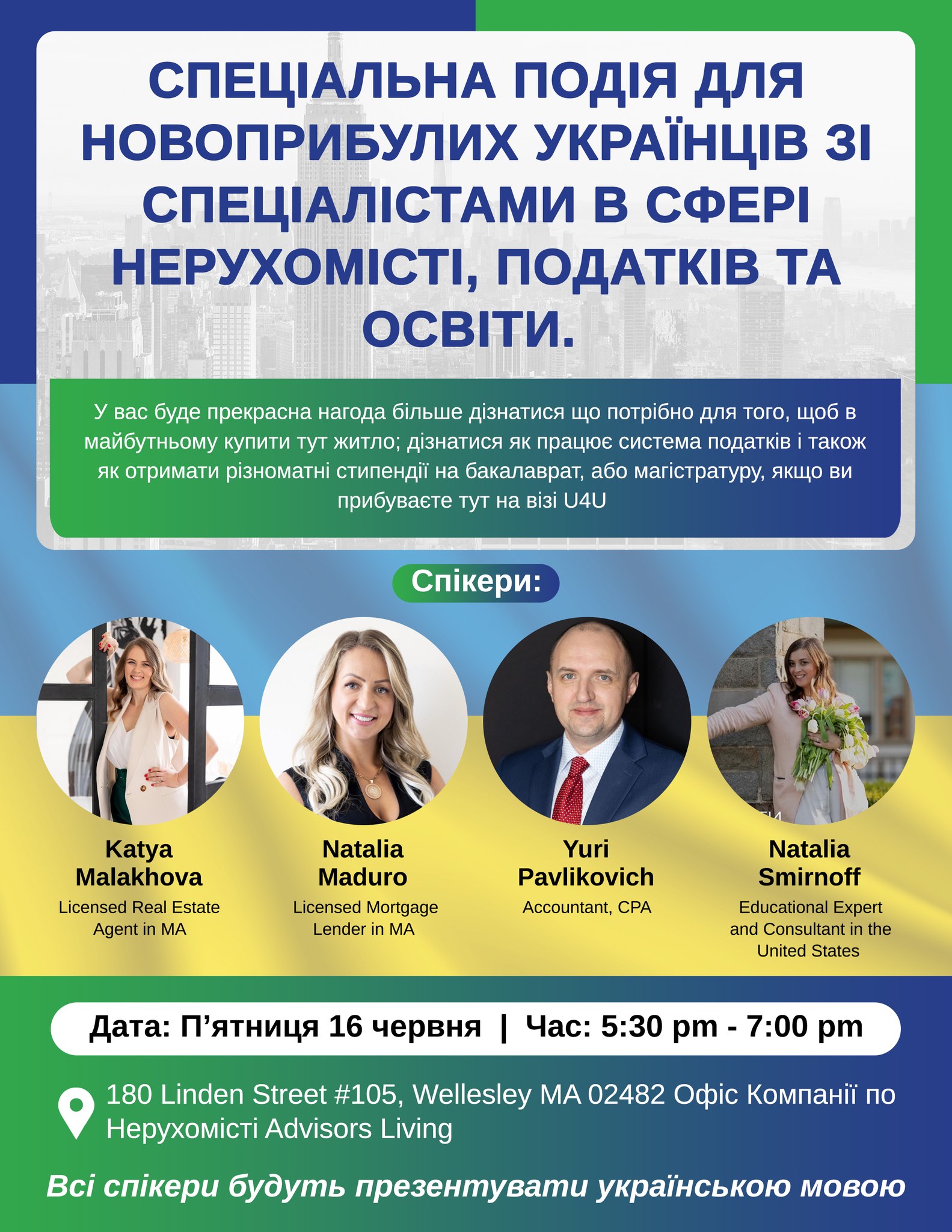 Спеціальна Подія для новоприбулих українців зі спеціалістами в сфері нерухомісті, податків та освіти