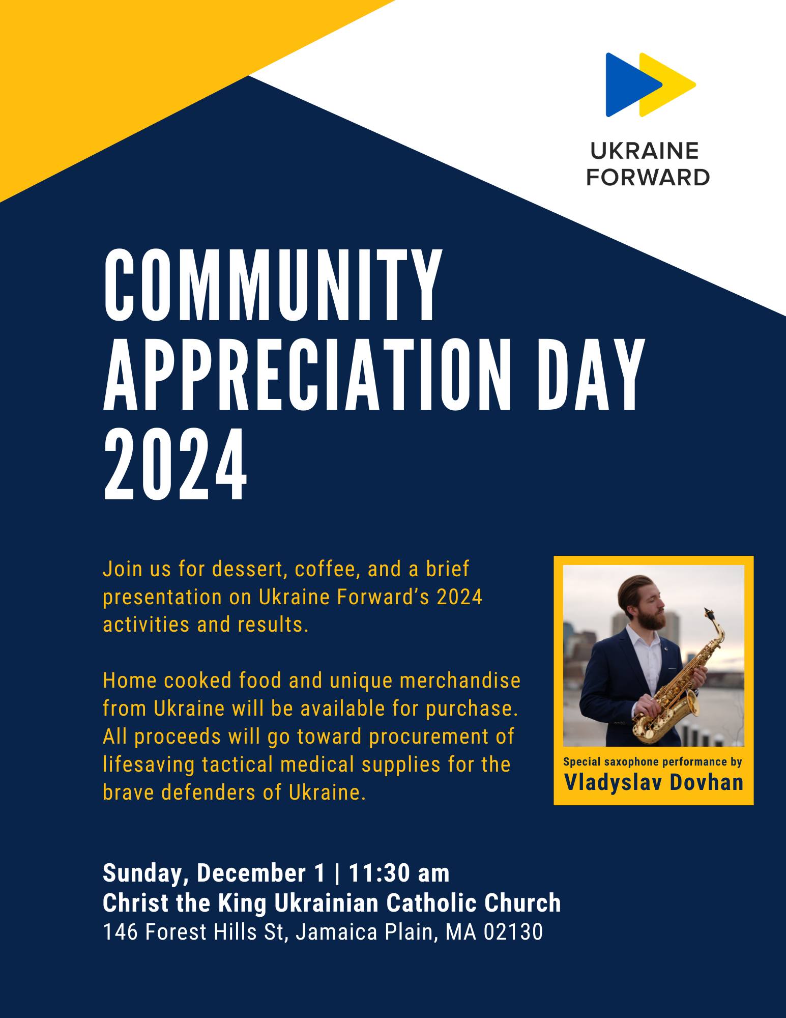 Don’t miss a special saxophone performance by Vladyslav Dovhan!