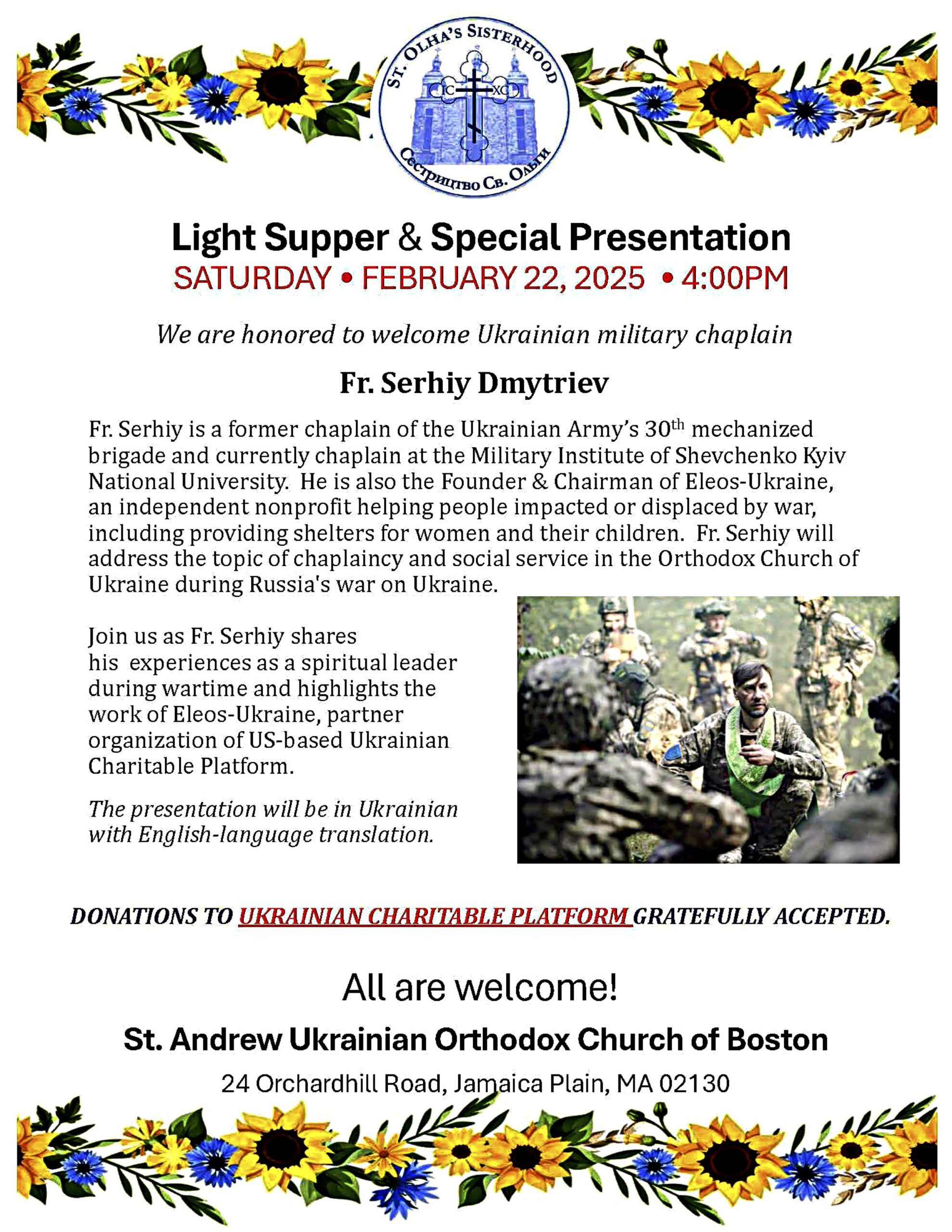 Ukrainian military chaplain Fr.Serhiy Dmytriev – Founder & Chairman of Eleos-Ukraine, an independent nonprofit helping people impacted or displaced by war, including providing shelters for women and their children. Fr. Serhiy will address the topic of chaplaincy and social service in the Orthodox Church of Ukraine during Russia’s war on Ukraine.