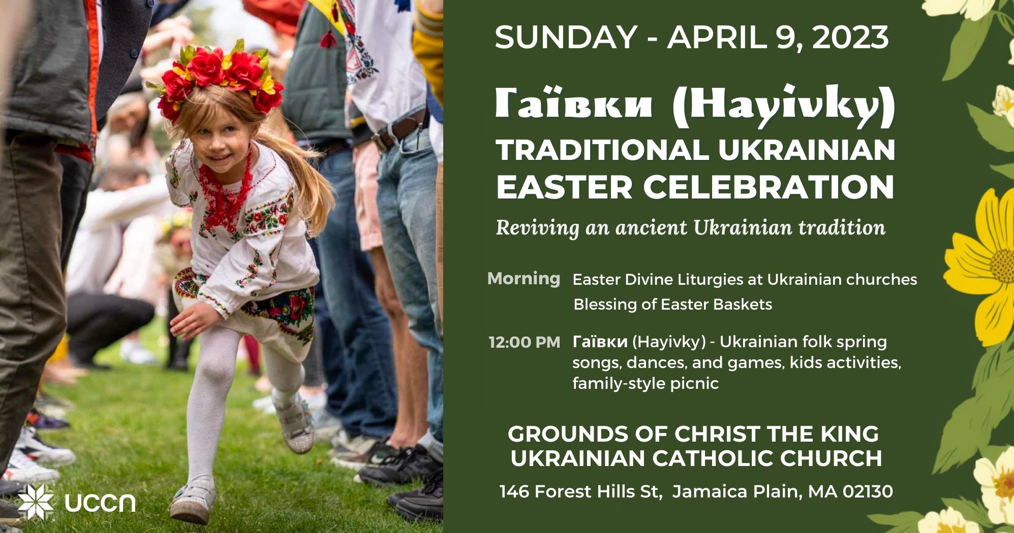 On Sunday – April 9, 2023, we invite you to join us for a Traditional Ukrainian Easter Celebration with Hayivky – Гаївки – a colorful component of Ukraine’s heritage and folklore.