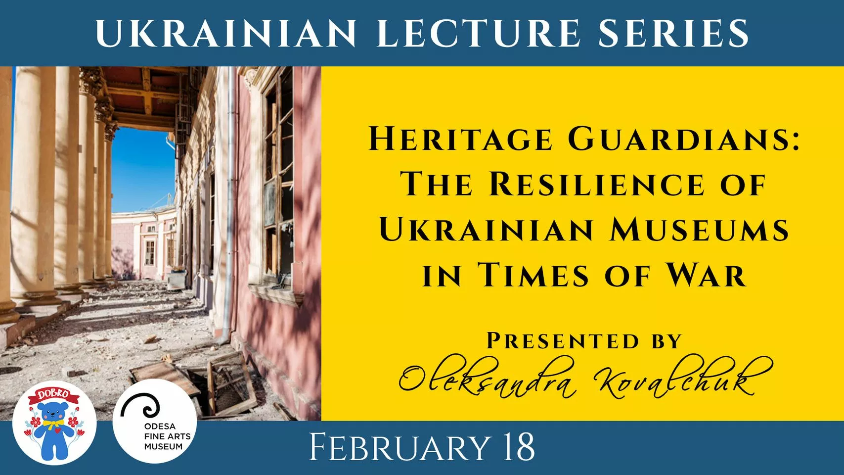 In this two part lecture series, Oleksandra Kovalchuk, the Director of Development of the Odesa Fine Arts Museum, delves into Ukraine’s rich artistic heritage, symbolic traditions, and the remarkable resilience displayed in times of the full scale invasion by the Russian Federation. From the courageous efforts of museums during the war to the cultural significance of bread in traditional and modern art, these lectures provide a comprehensive insight into the spirit and identity of Ukrainian people and history.
