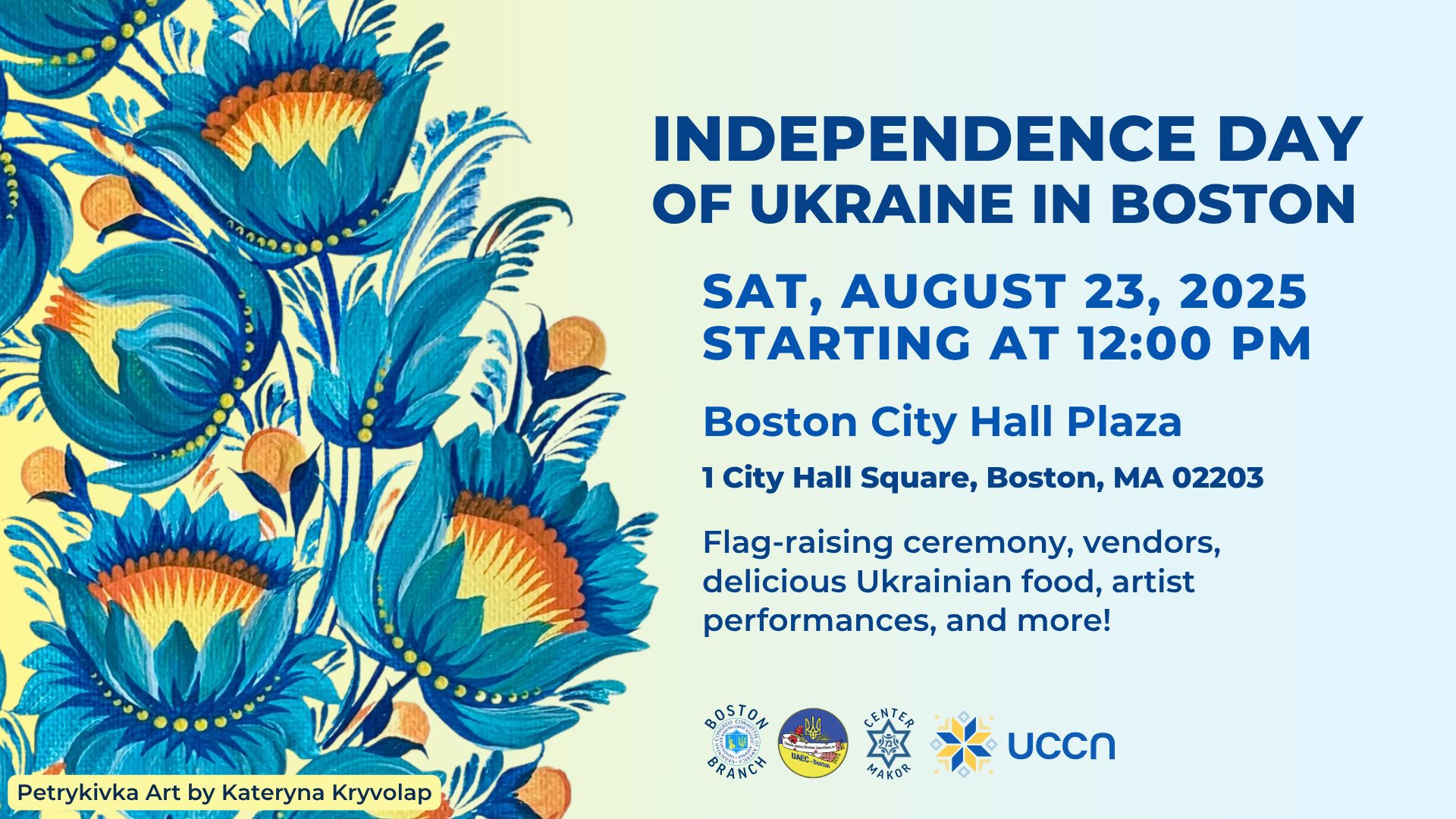 Join us on August 23, 2025, from 12:00 PM to 5:00 PM at City Hall Plaza in Boston for a vibrant celebration of Ukrainian culture and heritage! This volunteer-run, nonprofit gathering is dedicated to honoring Ukraine’s rich history and traditions.