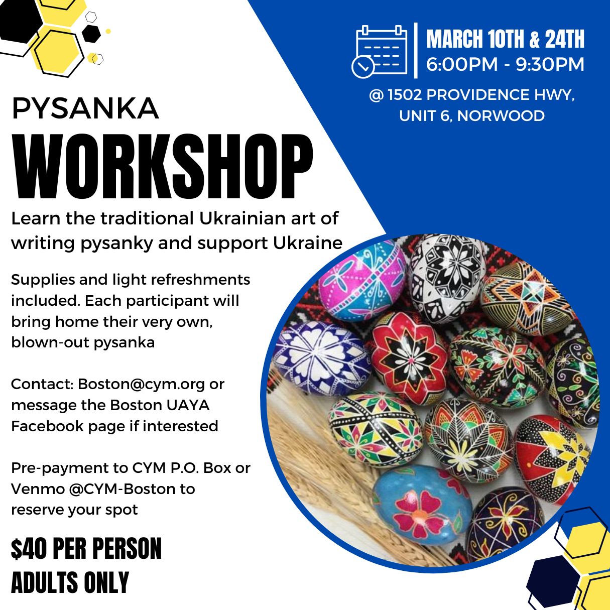 Supplies and light refreshments are included. Each participant will bring home their very own blown-out pysanka