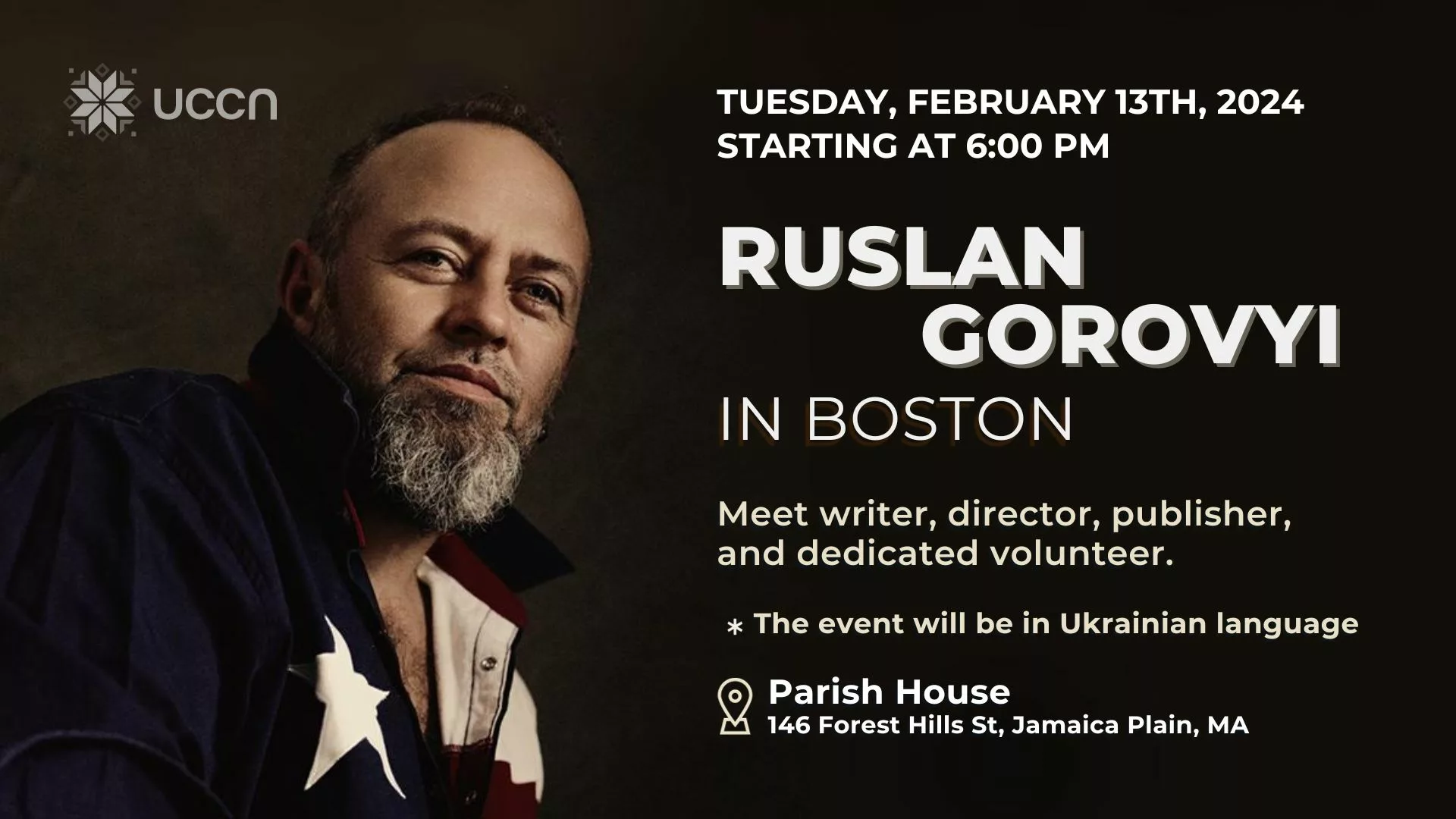 Join us for a charity evening with Ruslan Horovyi, a multifaceted individual known for his roles as a director, writer, journalist, musician, publisher, poet, and dedicated volunteer.