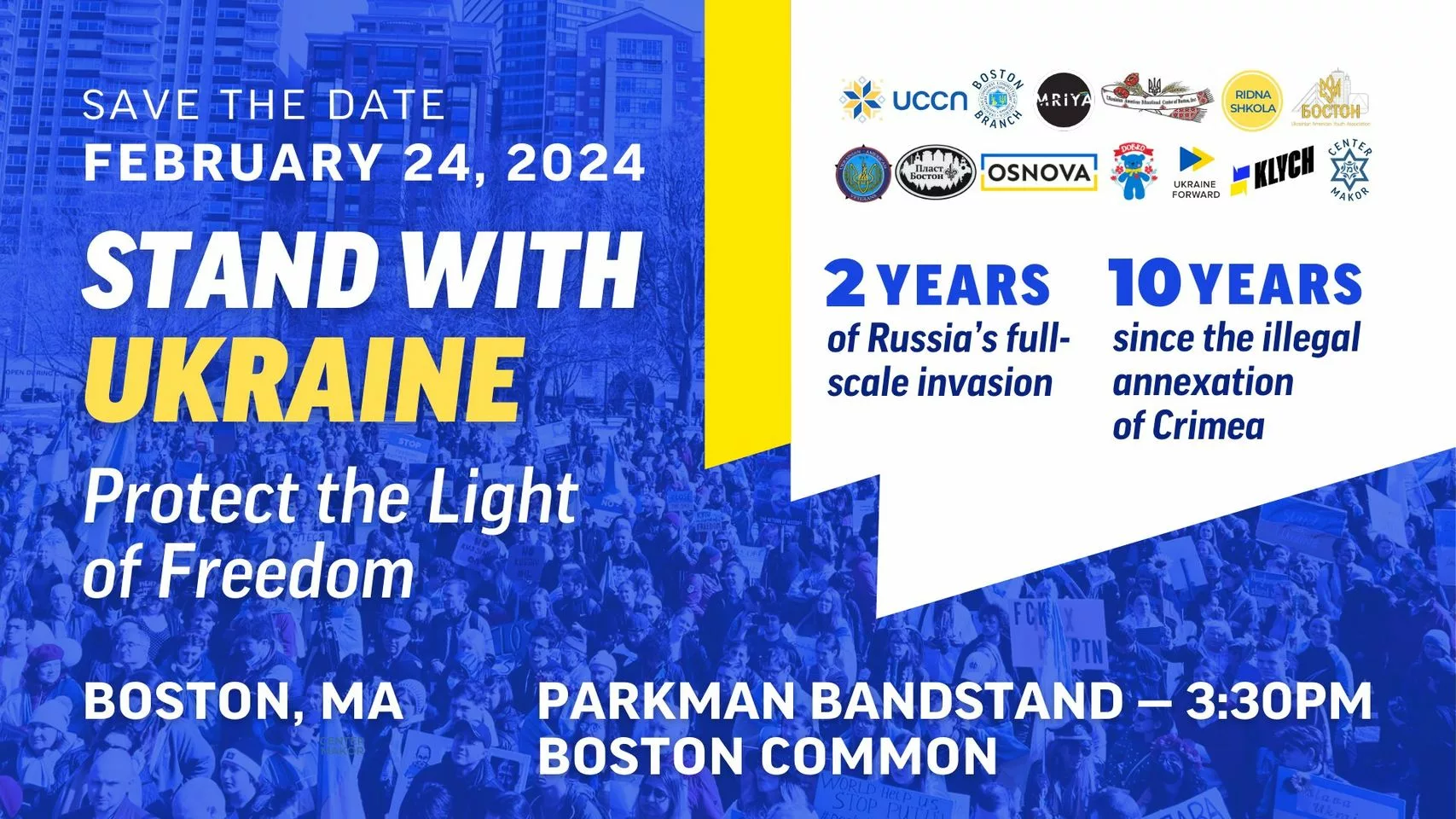 Join us on SATURDAY, February 24, 2024, as we commemorate 2 years since Russia’s invasion and 10 years since the illegal annexation of Crimea. Together, let’s protect the light of freedom. Stay tuned for details! #StandWithUkraine