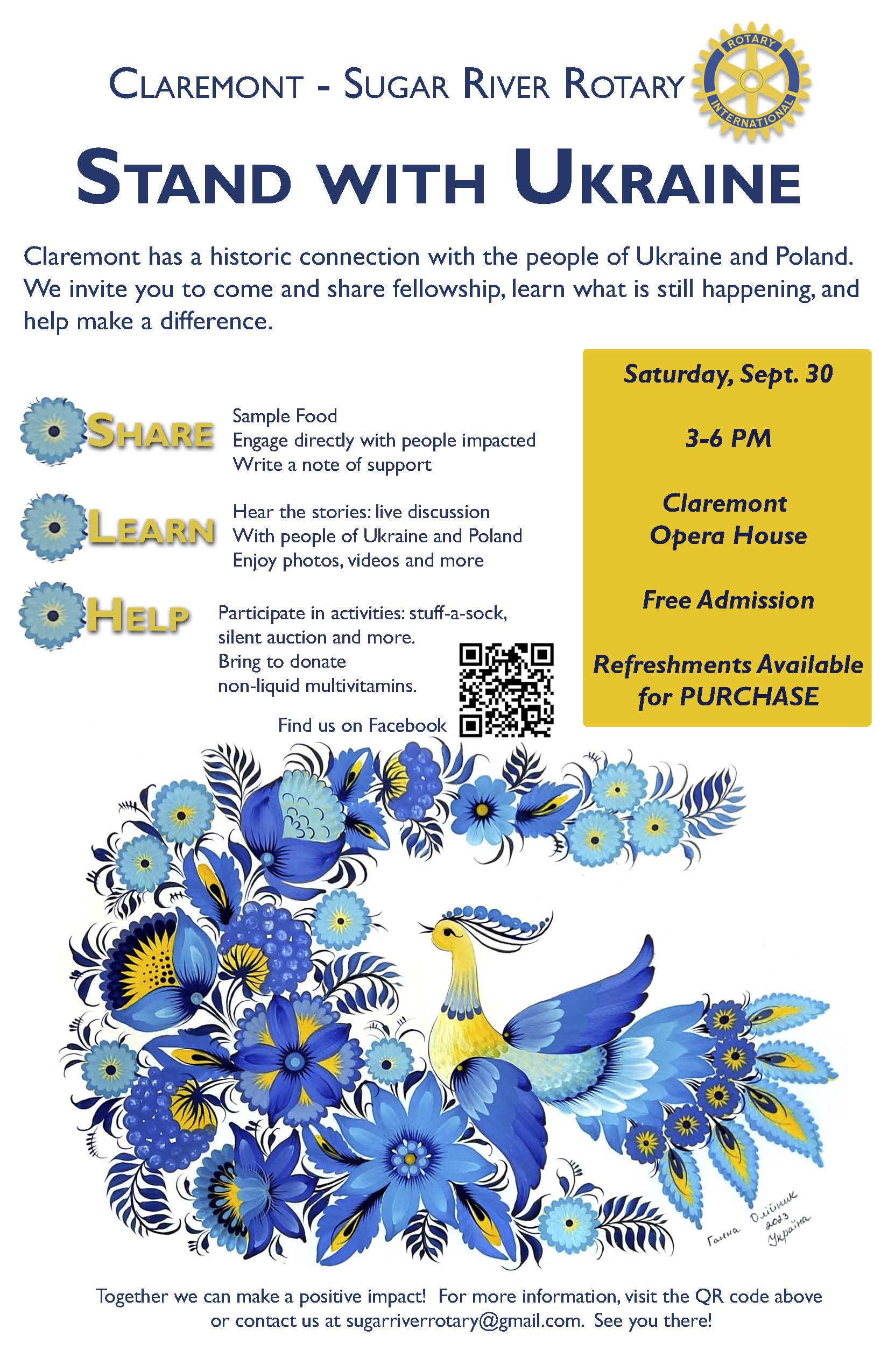 Claremont, NH has a historical connection with the people of Ukraine and Poland. We invite you to come and share fellowship, learn what is still happening, and help make a difference. Together we can make a positive impact. Event will take place in a historical Opera House (built in 1890s) in Claremont, NH.