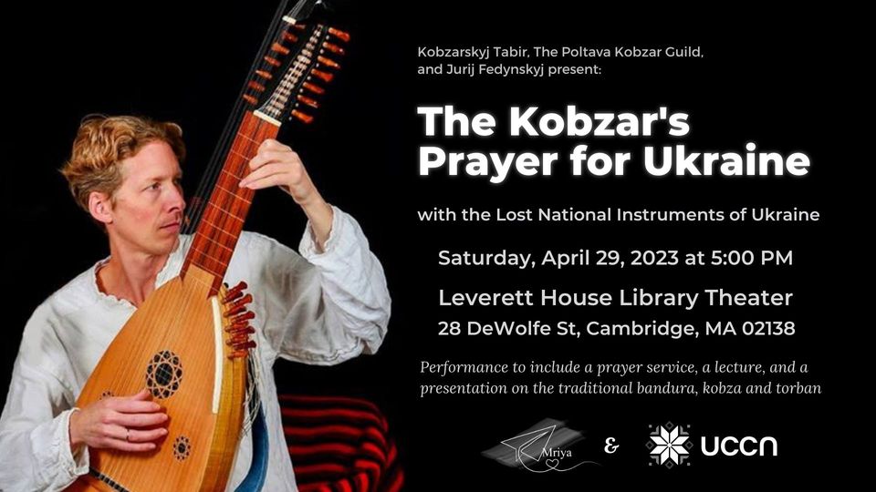 We invite you all to join us for The Kobzar’s Prayer for Ukraine by Jurij Fedynskyj this coming Saturday – April 29, 2023, at 5:00 PM in the Leverett House Library Theatre – 28 Dewolfe Street, Cambridge, MA 02138.