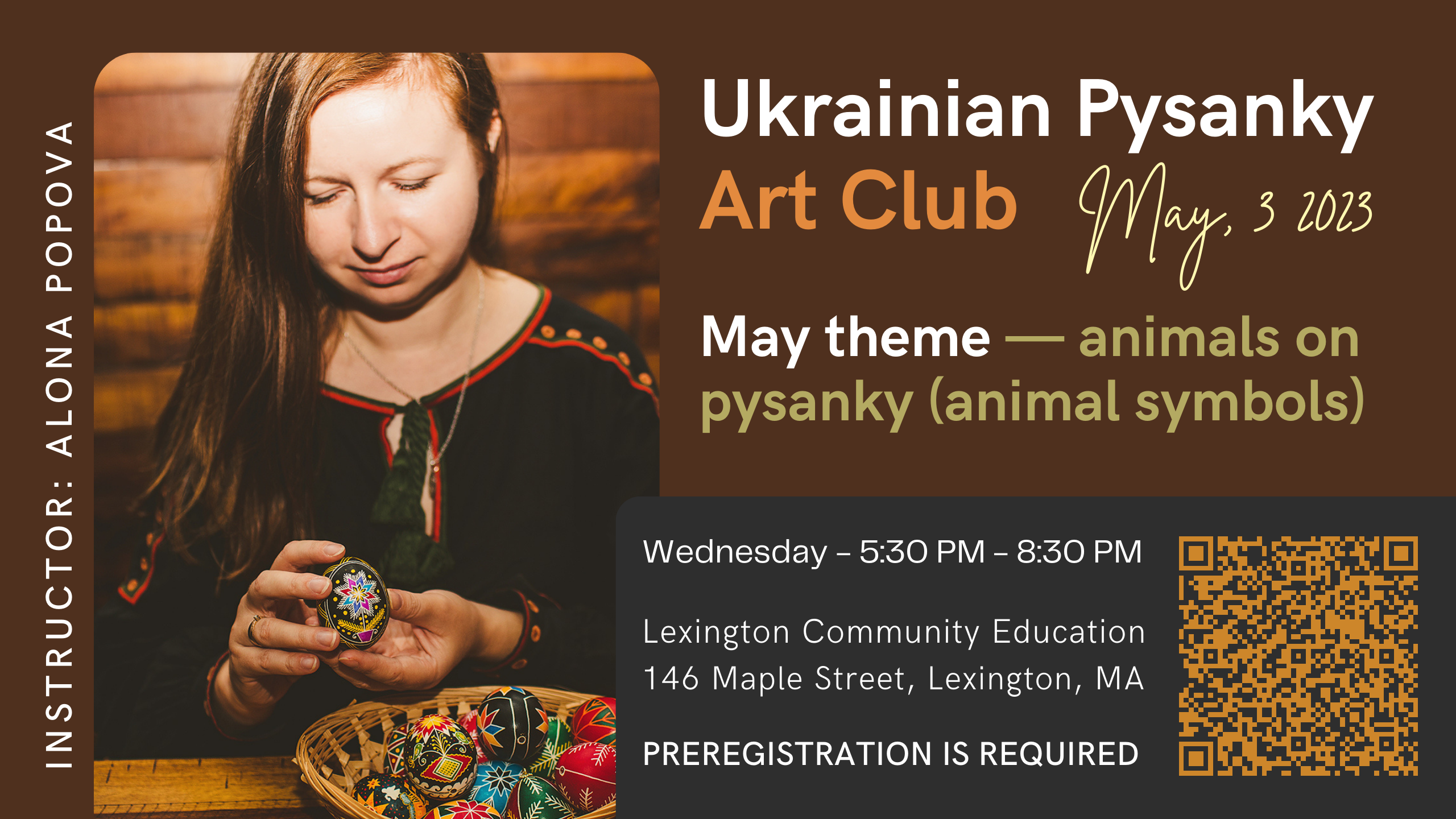 Registration: https://lexingtoncommunityed.org/class/ukrainian-pysanky-art-club-may/