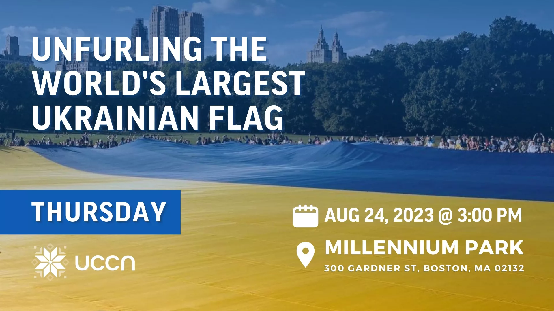 Після церемонії підняття прапора на площі перед Мерією Бостона, запрошуємо вас приєднатися до розгортання найбільшого у світі українського прапора в Міленіум парку в Бостоні.