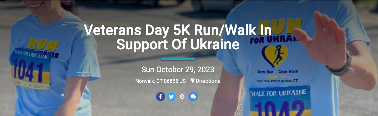 For more information, please refer to the following Web site: https://runsignup.com/Race/CT/Norwalk/VeteransDay5KRunWalkInSupportOfUkraine?fbclid=IwAR2JnaLjA3Nc5Ucg05f0LKMHgXIdc7RtuYoWWSUstAJFUDqA8bMMjwIz0OU