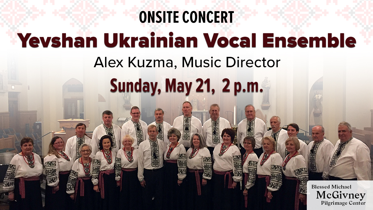 The Yevshan Ukrainian Vocal Ensemble, under the direction of music director Alex Kuzma, will perform at the Blessed Michael McGivney Pilgrimage Center. Based in Hartford, Connecticut, Yevshan has performed across the United States for more than 25 years, showcasing the heritage of Ukrainian song.